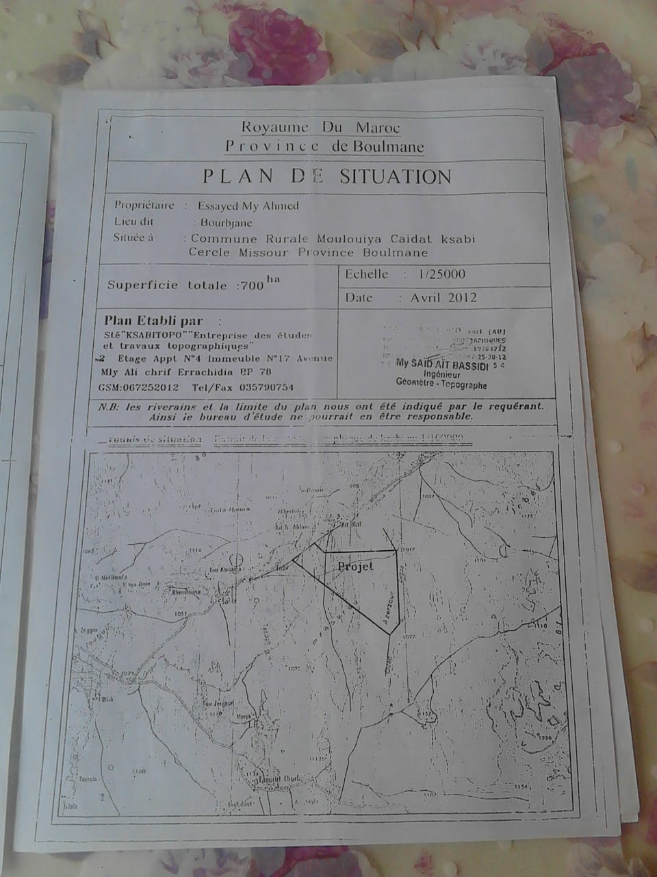 نتوفر على أرض فلاحية بالمغرب مساحتها جد كبيرة 700 هكثار بثمن مناسب تحد الطريق الوطنية رقم 15 بين تاوريرت و الكسابي و من الجهة الأخرى نجد واد ملوية الدي يصب من ثاني أكبر سد بالمغرب أرض خصبة تحتاج لمستثمر يستطيع الاستفادة منها